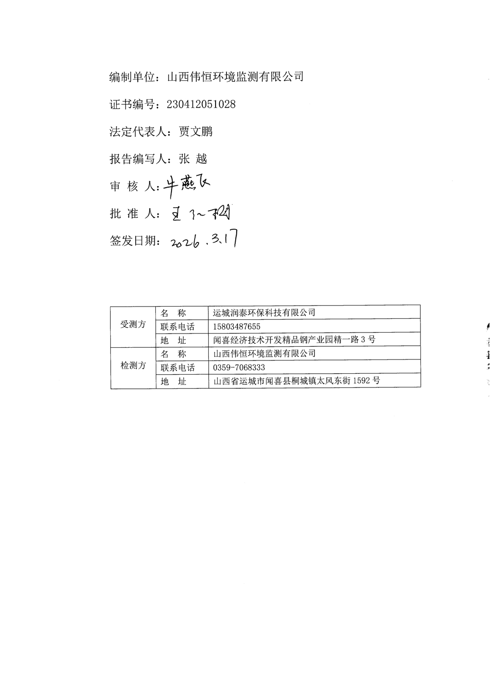 2026年潤泰環(huán)保三月份自行監(jiān)測報告