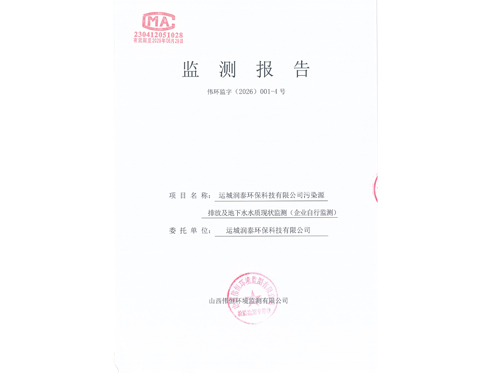 2026年潤泰環(huán)保一月份自行監(jiān)測報告