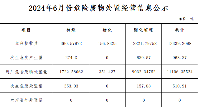 6月危險廢物處置經(jīng)營信息公示