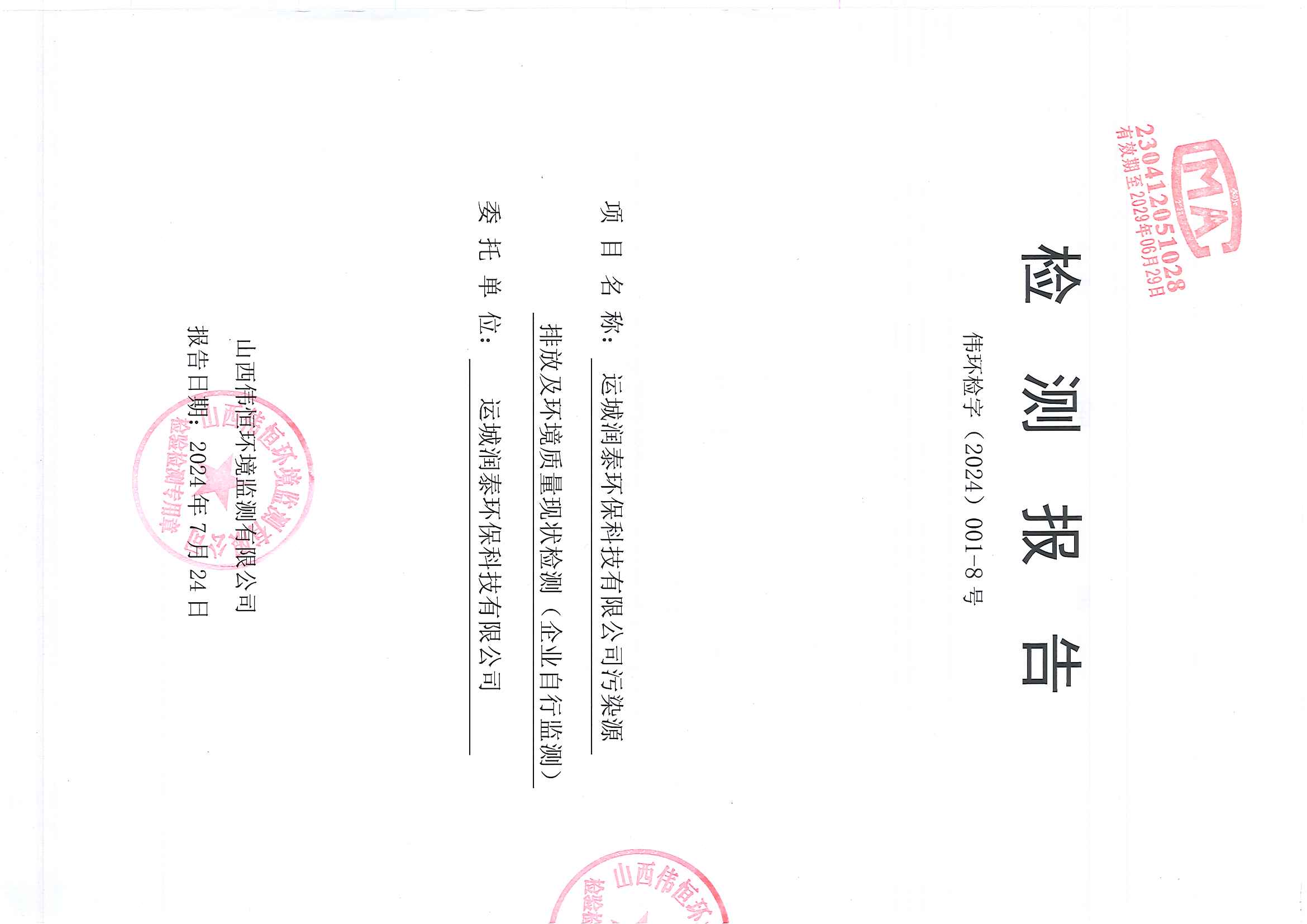 2024年潤泰環(huán)保八月份報告