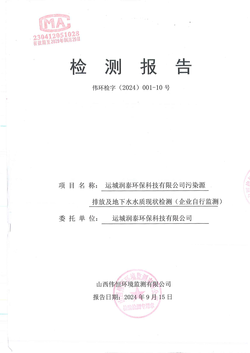 2024年潤泰環(huán)保九月報告-公示